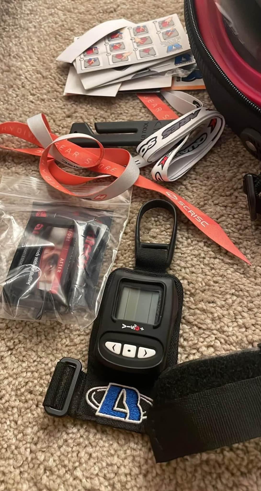 Both items have been used twice. I thought I was going to get back into skydiving I didn’t. Altimeter In good shape . Kiss helmet is a large.