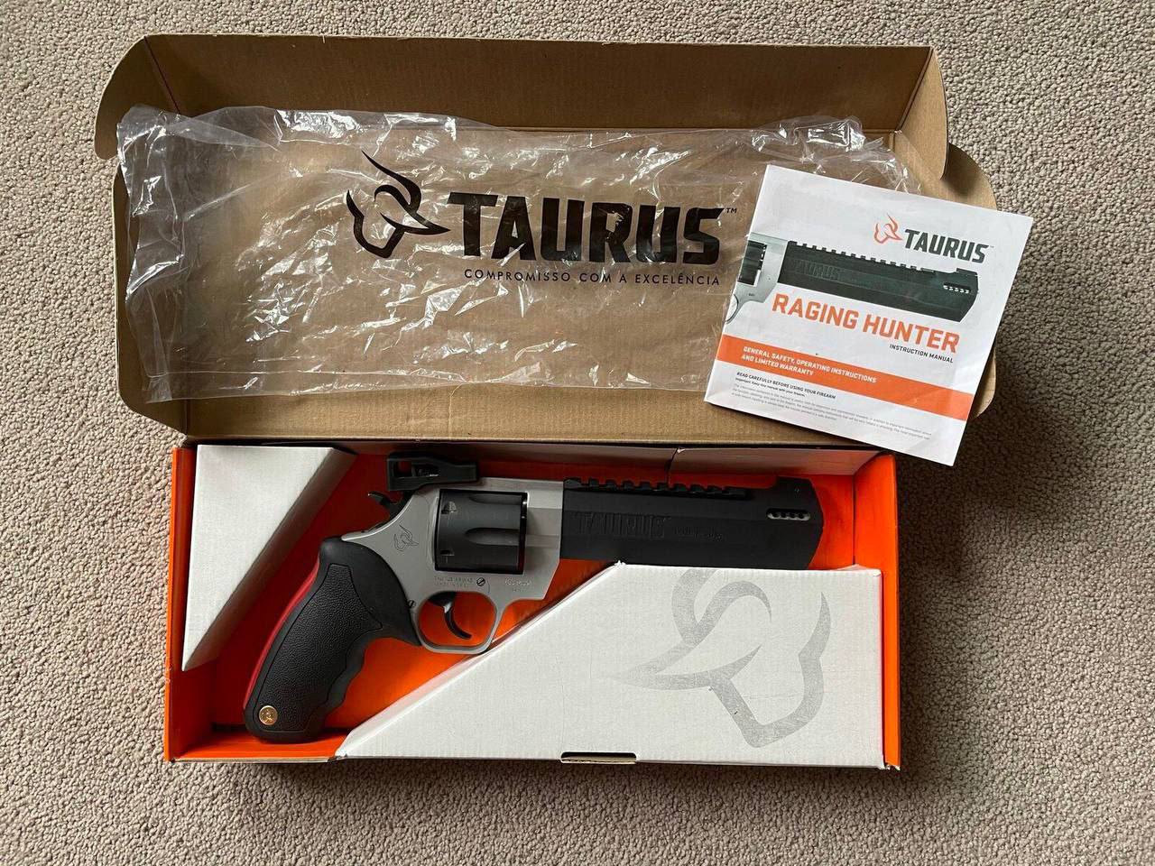 Raging hunter Taurus revolver with a box of 50ammo