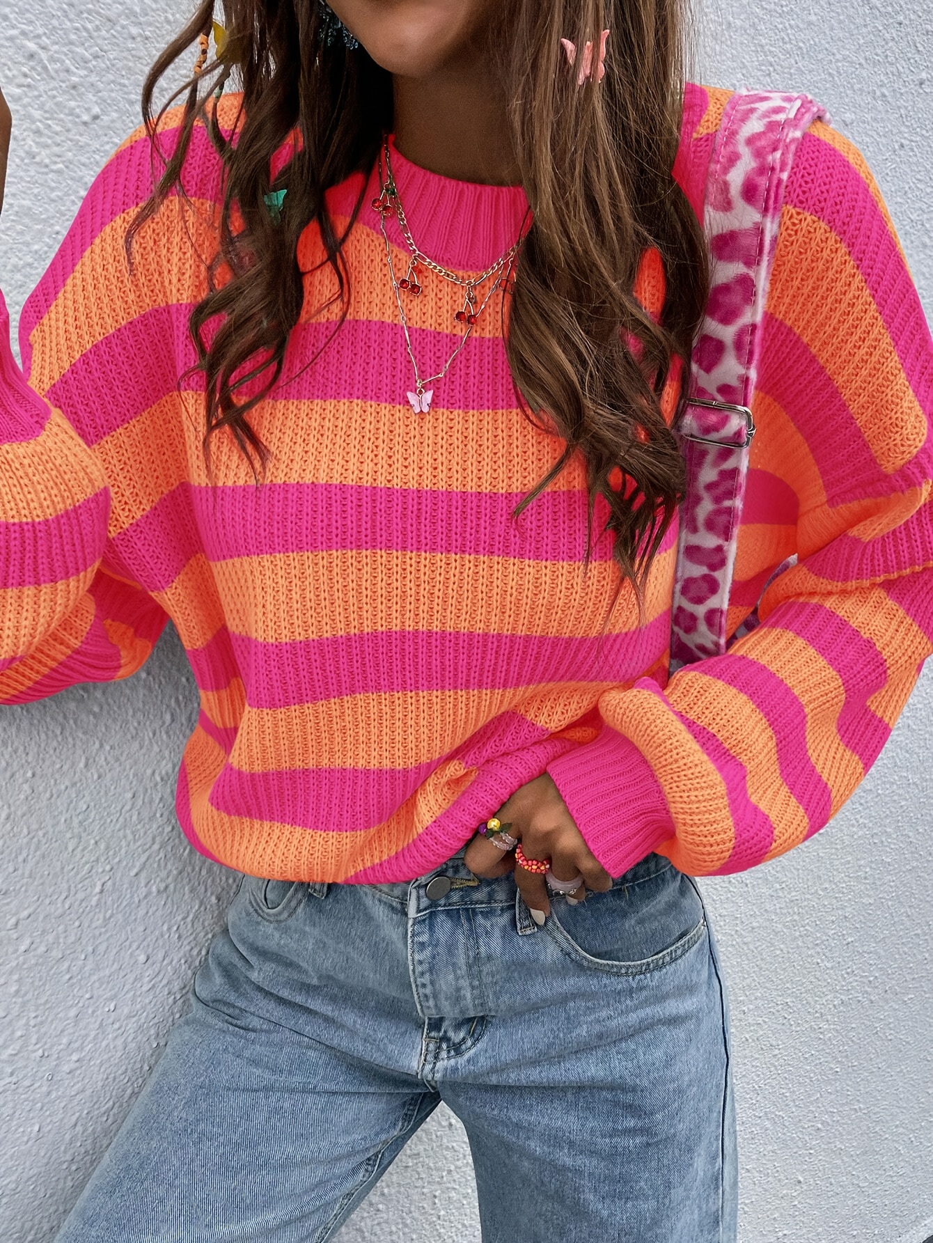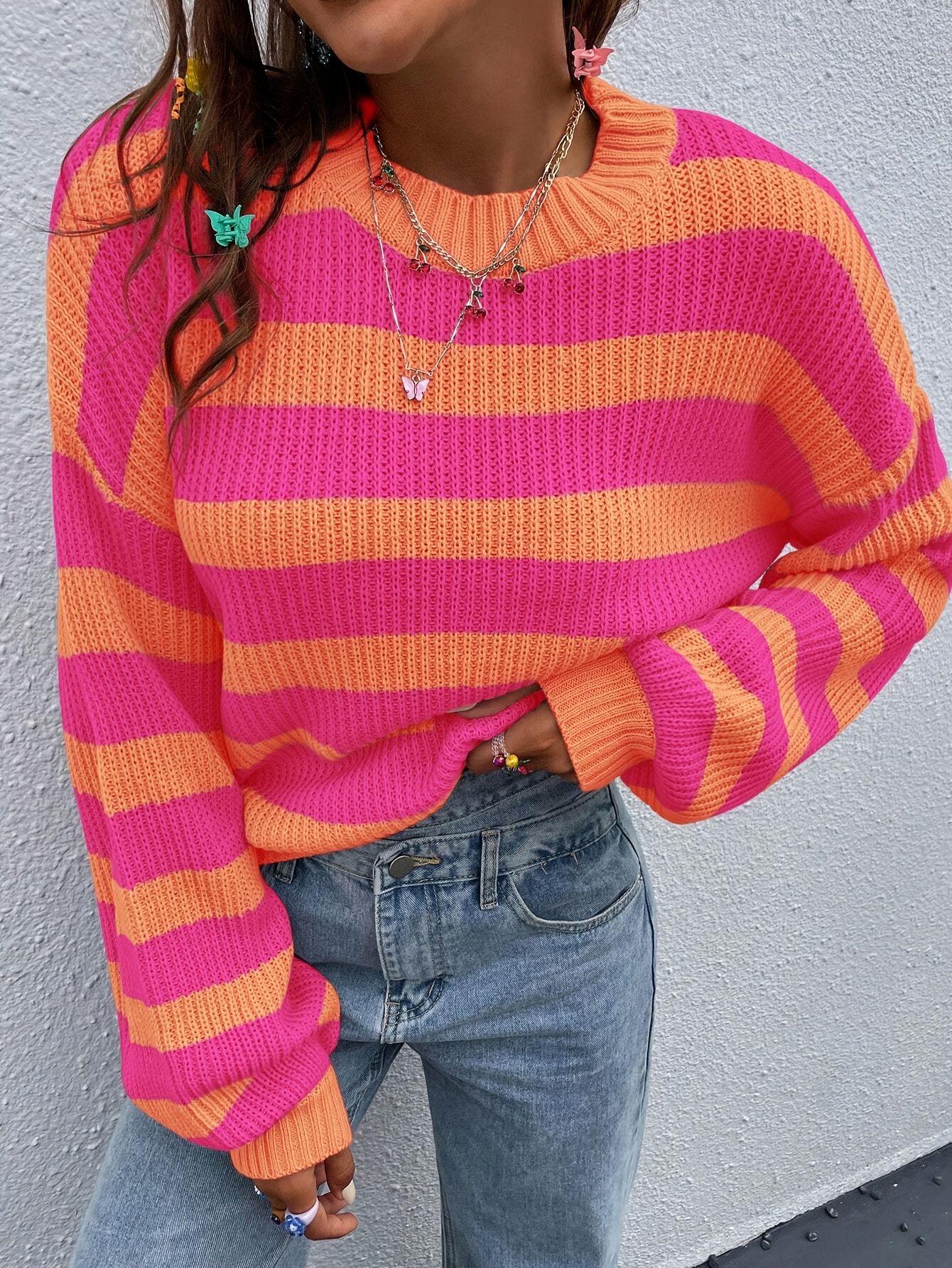 sweaters for women Striped Pattern Drop Shoulder Sweater